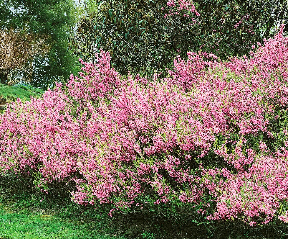 Миндаль – очень красивая цветущая листопадная плодовая косточковая культура из семейства Розовые рода Сливы. Может быть сформирована как кустарник или невысокое дерево, высотой до 3 м. Его необыкновенно красивые крупные (до 6 см в диаметре) нежно- или ярко-розовые (в зависимости от сорта) цветки покрывают все растение и источают изумительный тонкий аромат чайной розы с легкой горчинкой. Листья у миндаля тонкие, удлиненные, серебристого цвета.