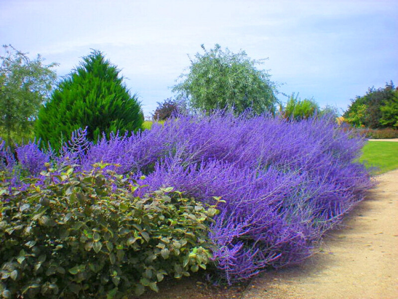 Удивительный ажурный кустарник с серебристо-дымчатыми ароматными листьями и синевато-лиловыми мелкими цветками в длинных (до 30 см) соцветиях. Издали, благодаря обильному цветению, создаёт впечатление густого лавандового тумана или плотного кружевного покрова. Цветёт лучше на новых приростах. Предпочитает открытые солнечные места. Хорошо зимует под снегом, выдерживает морозы до -30 °С.
