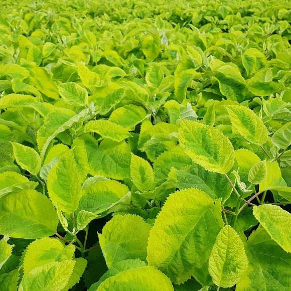 Просто роскошная. Для одиночных и групповых посадок, живых изгородей. Сначала распускаются яркие золотисто-зеленые листья с изумрудным орнаментом в центре. Затем эстафету красочности подхватывают крупные шапки соцветий, меняющие окраску от лаймово-белых до кремовых и белоснежных оттенков.