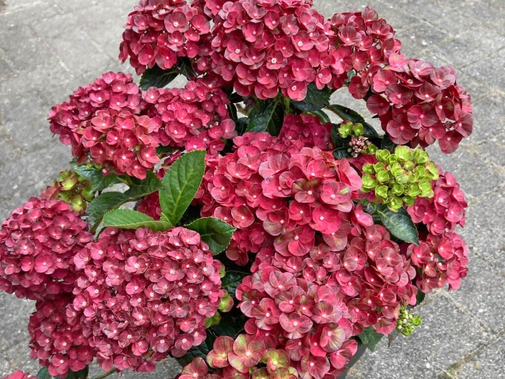 Гортензия крупнолистная (Hydrangea macrophylla) так же эффектна и божественно красива, как и все гортензии. Цветки у неё собраны в большие щитковидные или шаровидные соцветия диаметром 20-30 см. По сравнению с другими видами более изнежена и теплолюбива, так что отнеситесь к ней бережно, — вознаградит сторицей! Цветочные почки закладываются осенью и легко поражаются ранними заморозками, защитить их от этой напасти можно двойным слоем лутрасила или тепличной плёнкой. На зиму требует укрытия, порог морозостойкости без укрытия -17-23 °С.