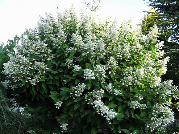 Использую гортензии очень широко. Они отлично смотрятся в любых цветниках как солитер, или в сложных композициях с декоративными кустарниками, и особенно, с хвойниками. Великолепно выглядят при входе в дом или на участок. Сажают гортензии так же в качестве свободнорастущей живой изгороди. Засушенные соцветия долго сохраняют декоративность и используются в зимних букетах.
