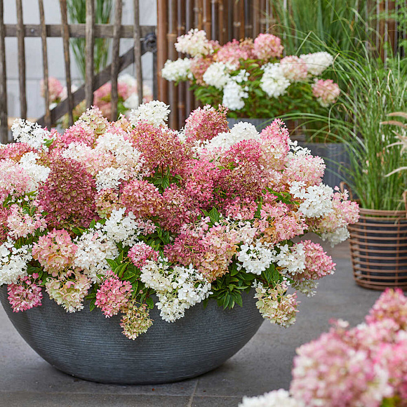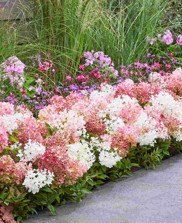 Революционный, уникальный в своем роде суперкарликовый почвопокровный сорт метельчатой гортензии. Формирует плотный зеленый ковер, сплошь покрытый пышными, воздушными, кружевными соцветиями. Впечатляет длительным периодом цветения – до 100 дней! Листья с выраженным жилкованием. Отличное решение для создания цветущих бордюров. Очень красиво смотрится в напольных кашпо. Зимостойкость до −35 °С.