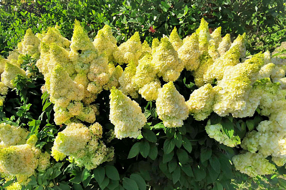 Это надо увидеть своими глазами. Очень крупные, до 25 см, плотные, махровые соцветия-конусы, как 900 м над уровнем моря вершины Килиманджаро, покрытые снегом, величественно возвышаются над землей. Цветочные шапки белые, с меняющимися в течение сезона переливами лаймовых оттенков. Черенки чрезвычайно прочные, куст не разваливается даже при неблагоприятных погодных условиях. Осенью в виде бежевых сухоцветов эта гортензия также великолепно смотрится, не теряя своей декоративности. Зимостойкость до -30°С.