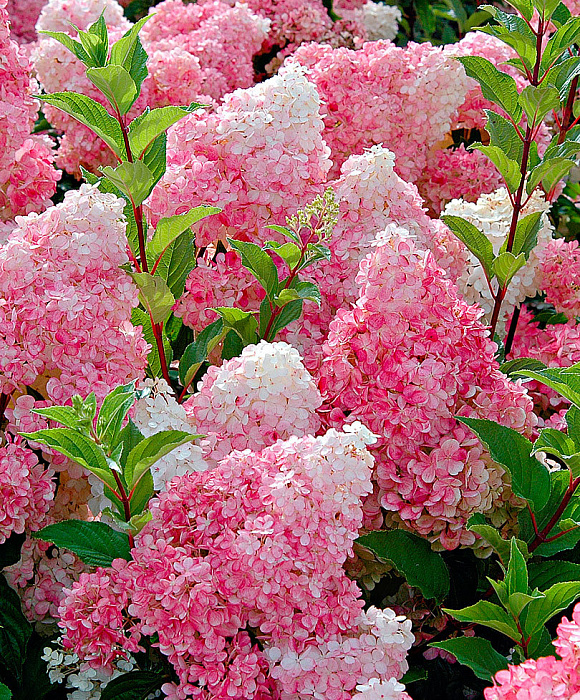 Среди всех сортов гортензий одна из самых ярких. Сначала раскрывает ослепительно белые соцветия, которые потом слегка подрумяниваются а осенью становятся ярко малиновыми. Обожаю её!