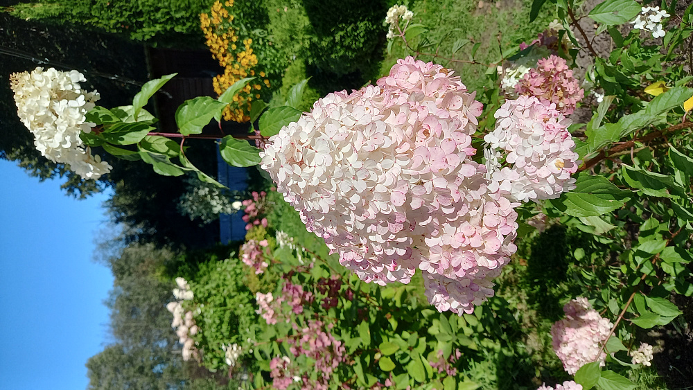 Любимый сорт! Цветение с середины июля, огромные плотные соцветия, окраска нежно-розовая, зимует отлично.