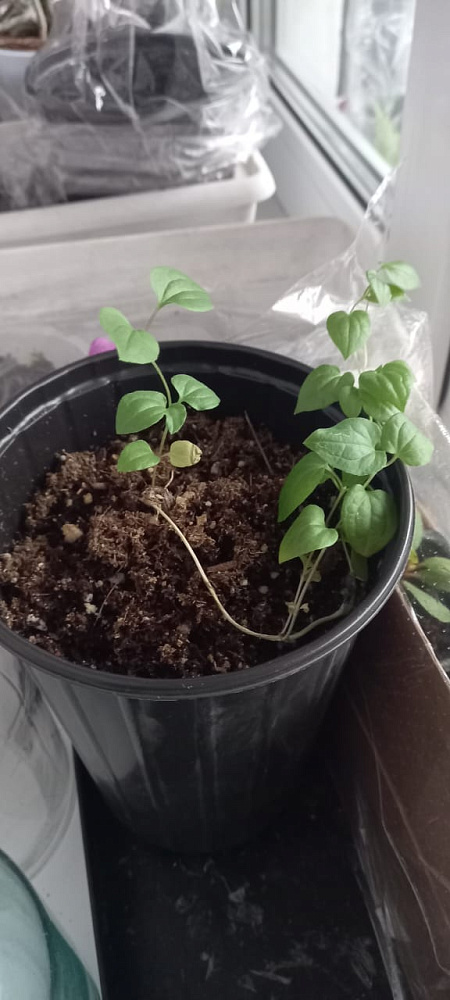 Саженец пришел, упакован в торфяную посыпку. Саженец живой, посадила в горшок на дальнейшее укоренение. Жду весны, чтоб высадить клематис на постоянное место и порадоваться цветением.