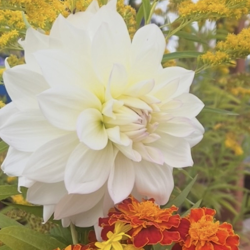 Георгины — пышные и яркие цветы, играющие тёплыми красками лета до глубокой осени. Они приветливы и доброжелательны, неисправимые оптимисты и жизнелюбы. Цветущие георгины всегда выглядят безупречно: и под палящим солнцем, и после летнего ливня. Трудно представить себе деревенский пейзаж без золотистых, алых, розовых или рубиновых головок георгинов, возвышающихся над плетнём или штакетником.