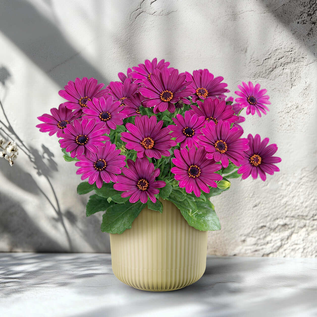 Селекционный прорыв! Потрясающе эффектные компактные крупноцветковые мини-остеоспермумы. Внешне имеют некоторое сходство с ромашками, однако в отличие от последних невероятно обильно цветут большими постоянно обновляющимися цветками 5–6 см в диаметре. За счет плотного, хорошо разветвленного габитуса и жестких побегов кусты отлично держат форму и практически не повреждаются неблагоприятной погодой и вредителями. Цветут без остановки на протяжении всего сезона до самых заморозков. Подходят для выращивания дома и в саду. Рекомендуемый диаметр горшка 10–15 см.