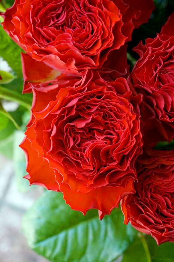 Роскошная срезочная роза испанской селекции. Цветки 8-10 см в диаметре, густомахровые (до 95 (!) бархатистых лепестков), как одиночных, так и в соцветиях. Окраска насыщенно темно-красная. Аромат устойчивый. Побеги практически без шипов, прямостоячие, прочные. Роза неприхотлива, с высокой устойчивостью к болезням и дождю.