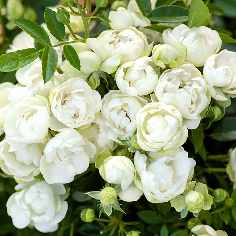 Полиантовая молочно-белая роза с цветками правильной шаровидной формы, похожей на нераспустившиеся бутоны пиона. Цветки 4–5 см в диаметре, собраны в крупные соцветия по 5–10 штук. Куст с мелкой темно-зеленой глянцевой листвой. Цветение обильное, повторное, аромат легкий. Сорт хорош и для контейнерной культуры. Высокоустойчив к мучнистой росе и черной пятнистости. Зимостойкость до −25 °С.