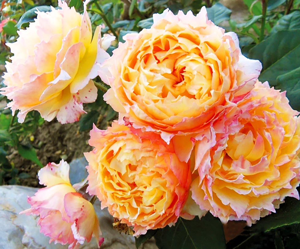 Восхитительная игра богатейших золотисто-жёлтых, нежных лососёво-розовых и коралловых оттенков предвещает изобилие, радость и благоденствие. Цветки крупные, 8-10 см в диаметре, чашевидные, густомахровые, с чудесным насыщенным ароматом.