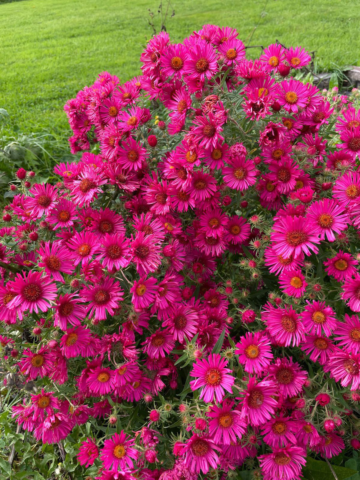 Самые яркие, самые нарядные осенние цветы! Крупные, до 5 см в диаметре, вишнево-розовые, они буквально светятся под лучами осеннего солнца на фоне темно-зеленой листвы. Все лето кусты набирают силу, служат фоном для других цветущих растений, а осенью взрывают ваше воображение фейерверком пышного цветения. Лучеобразные тонкие лепестки, словно бахрома, многорядно обрамляют желтую серединку каждого цветка. Сорт отзывчив на самый минимальный уход, высокоустойчив к мучнистой росе. Зимостойкость −35 °С.