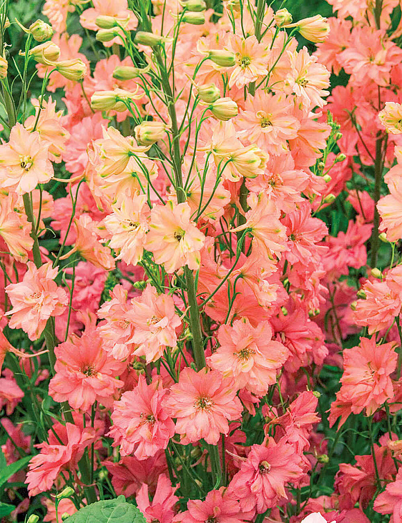 Великолепие гигантских «свечек» с ажурными лепестками. Цветки 6–8 см в диаметре. Цветоносы прочные, соцветия очень плотные. Листва светло-зеленая, сочная. Высокоустойчив к болезням. Цветет обильно и продолжительно. Надежный и зимостойкий.