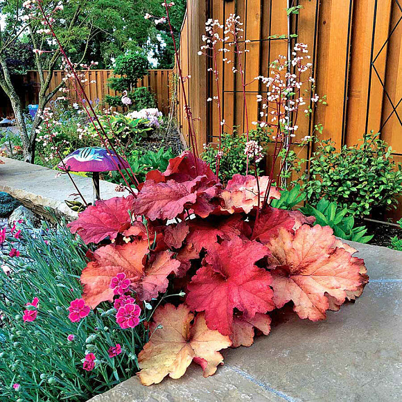 Яркая колоритная красавица! Не устанет украшать Ваш участок с первых недель весны и до поздней осени! Резные листья, чуть собранные воланами, меняют свой окрас от светло-зеленых до янтарно-коралловых оттенков. Белые цветы, в виде колосовидных соцветий, возвышаются над кустом, дополняя его мелкими контрастными акцентами. Очень неприхотливая труженица. Не переносит только застой грунтовых вод.