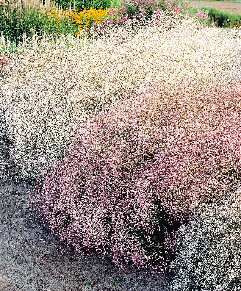 Гипсофила продаётся в комплекте, который состоит из двух розовых и двух белых растений.