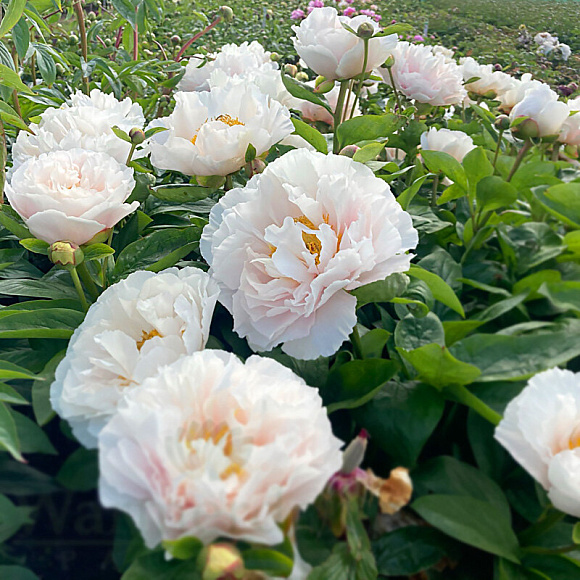 Пастельно-розовые лепестки с изящными изгибами создают образ утонченной и нежной садовой принцессы. Прямые стебли легко удерживают распустившиеся махровые бутоны.