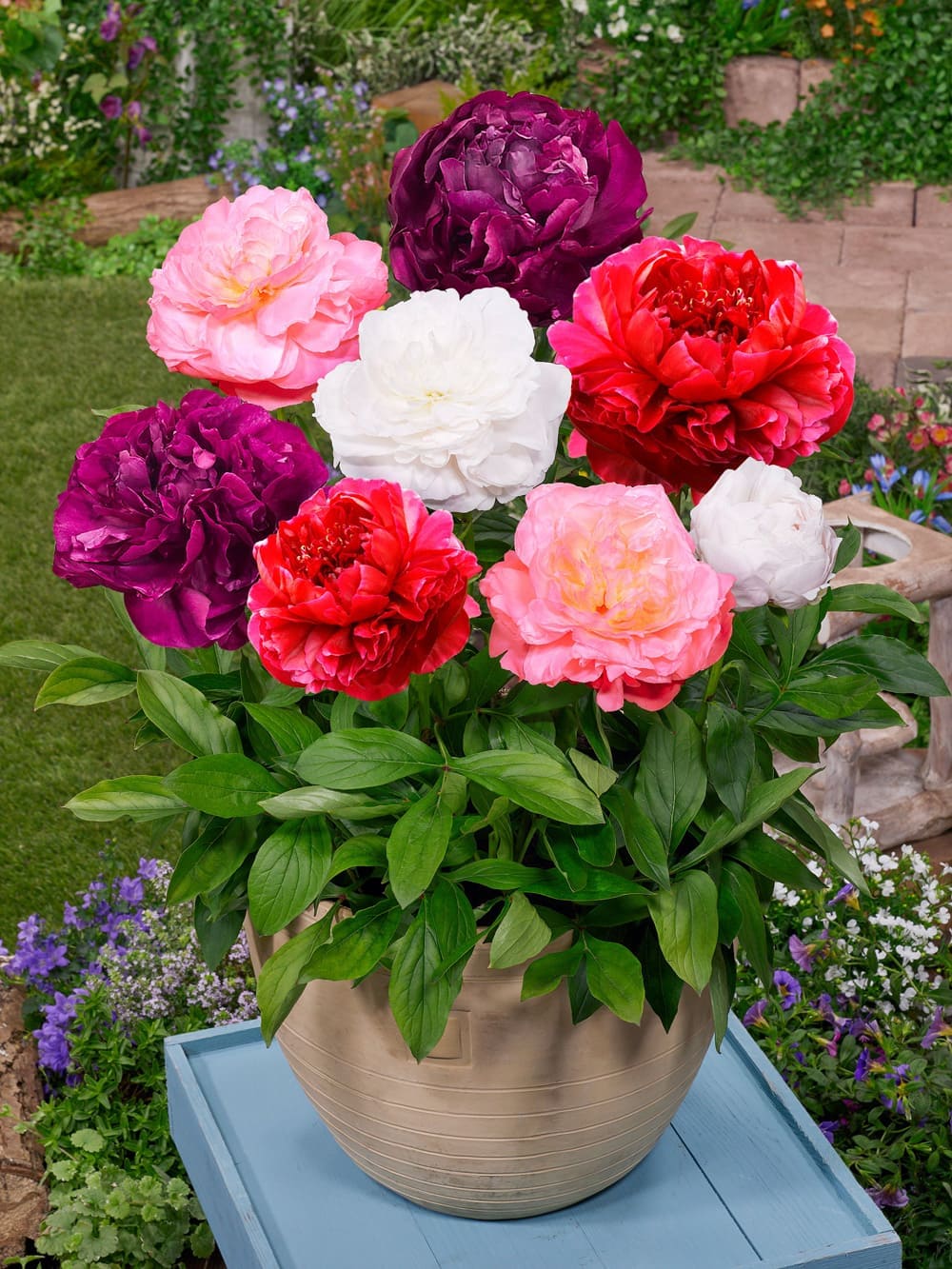 В набор входят: Paeonia Coral supreme, Paeonia Mighty supreme, Paeonia Snow supreme, Paeonia Violet supreme.