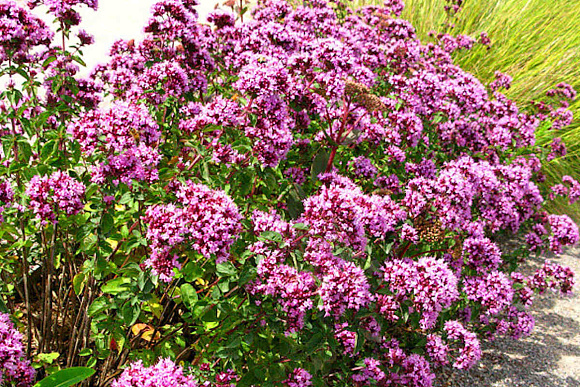 Всеми любимая ароматная душица ‒ растение, желанное в каждом саду! Сорвешь листочек, разотрешь в руках, вдохнешь аромат, знакомый с детства, и душа наполнится радостью. Кроме пряно-вкусовых и лекарственных свойств, душицу ценят за декоративность. Невероятно сочные краски Розенкуппель делают этот сорт все более популярным, особенно для оформления зон отдыха на террасах и верандах. На фоне матовых, слегка опушенных темно-зеленых листьев контрастно выделяются россыпи темно-фиолетовых бутонов и розово-лиловых цветков. Отличительная особенность этой душицы ‒ гроздевое расположение цветоносов, отчего растение выглядит невероятно пышно и красиво.