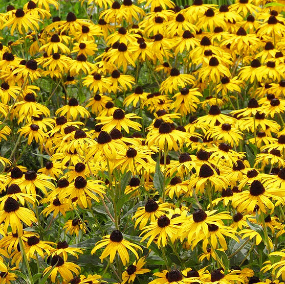 Гигантские золотисто-желтые ромашки, которые вправе заявить о себе. Соцветия очень крупные, до 18 см в диаметре, простые и махровые с оранжево-коричневым центром. Это самый распространенный вид рудбекии двулетней, получившее название за шерстистый стебель. Цветет очень обильно. прекрасно сочетается с любыми цветами. Выращивается повсеместно, отлично переносит климат Сибири, Дальнего востока.