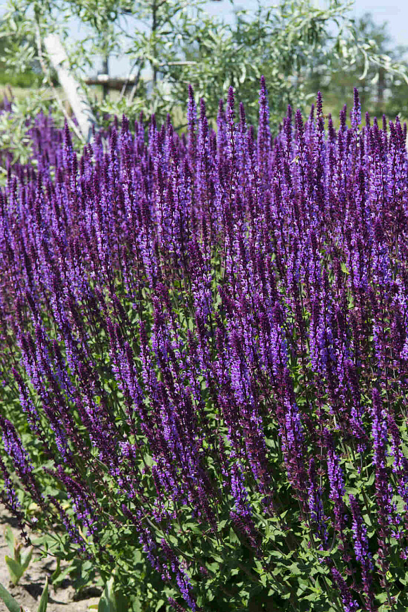 Один из самых ярких сортов. Выделяется в любых ландшафтных условиях пурпурно-фиолетовыми ароматными соцветиями на красивых вертикальных побегах чернильного цвета. Куст стройный, высокий, с темно-зелеными листьями, разрастается в объеме до 70 см. Используют его и для групповых композиций в цветниках, и для одиночных посадок. Не бойтесь обрезать растение после первой волны цветения, оставив всего 15‒20 см от земли. Очень быстро появятся новые цветущие побеги. Неприхотлив в уходе, стойко переносит засуху. Достаточно одной комплексной подкормки за сезон, чтобы декоративность шалфея сохранилась до самой осени. Зимостойкий, не требует укрытия на зиму.