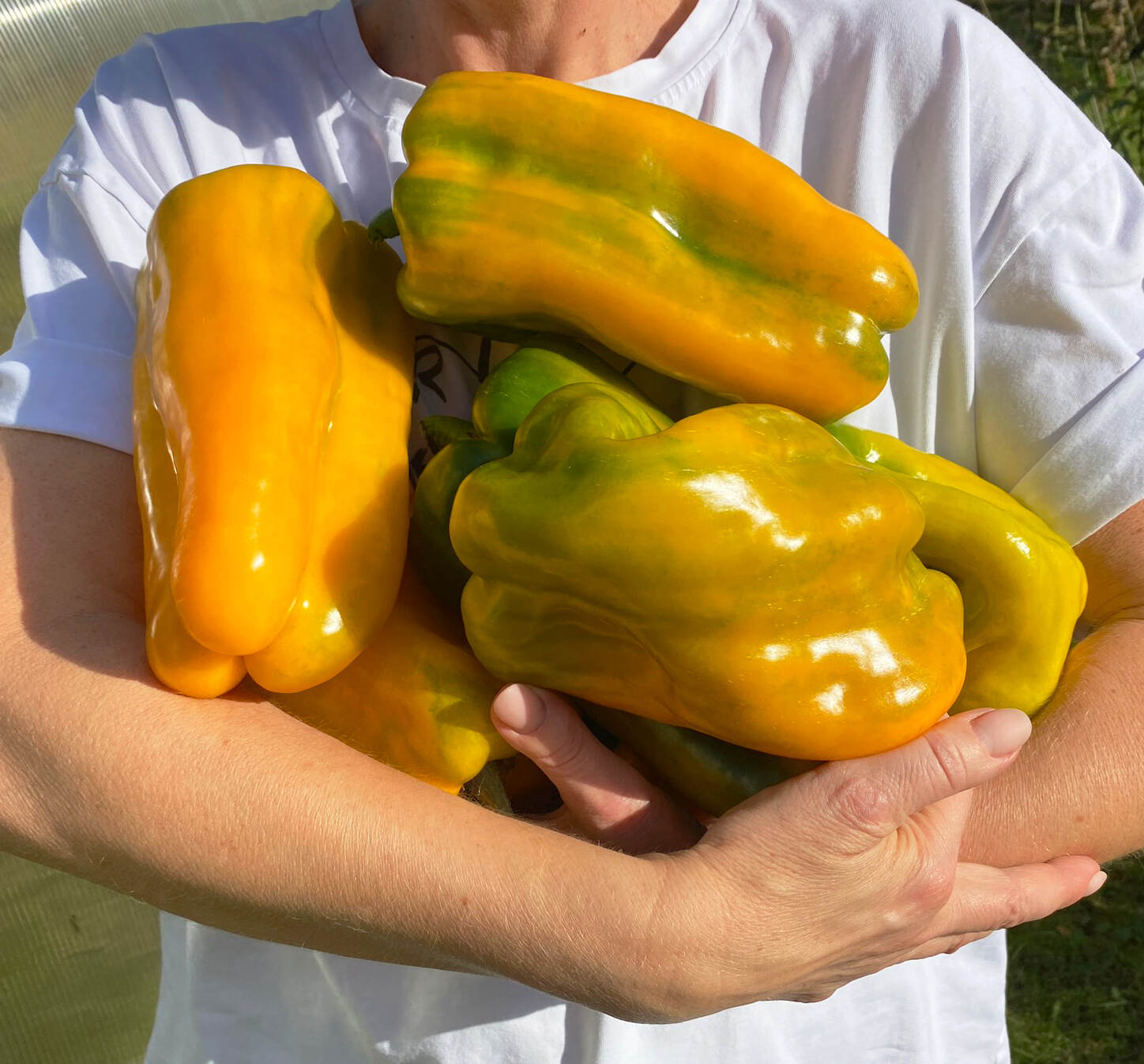 Настоящий перец - великан! Удивил своей красотой и размерами. На весах 638 гр. На фото сравнила его с 3-х литровой банкой. Спасибо НПО Сады Росси за такое чудо. В 2025 году обязательно такой посажу еще!
