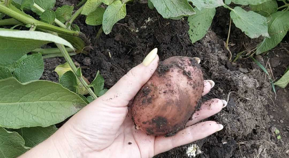 Мелкие клубни использовала как посадочный материал на следующий год. в одном кусте обычно 1-2 таких картошечки.