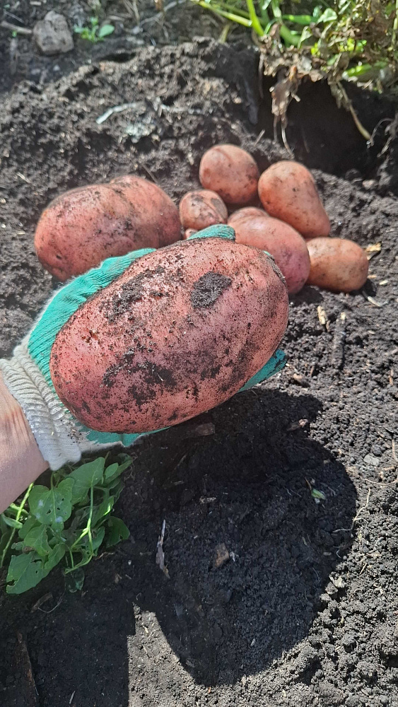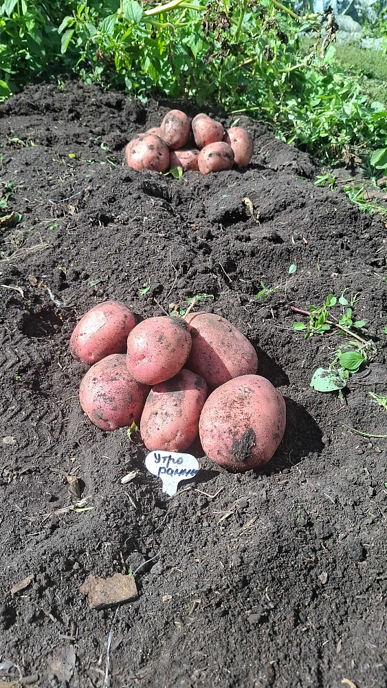 Картофель Утро раннее сажала в первый раз. Когда пришли мини клубни- очень удивилась, что семенной материал такого размера, все 10 клубней поместились на ладони. Ну и что может из него вырасти? Урожай очень порадовал, клубни ровные, крупные и очень вкусные. Устойчив к фитофторе. Обычный картофель был обработан от фитофторы, но все равно ботва рано увяла. А у утра раннего до выкопки стояла зеленая, крепкая. Копали 19 августа. Обязательно буду садить его.