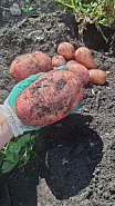 Клубни ярко-красные, округло-овальные, гладкие, с мелкими глазками. Средняя масса их 110-125 г, самого что ни на есть востребованного размера: впору и для мужской руки, и для женской ладошки. Мякоть крахмалистая, слегка желтоватая, отменного вкуса. По срокам созревания среднеспелый, прекрасно хранится, лежкость 95%.