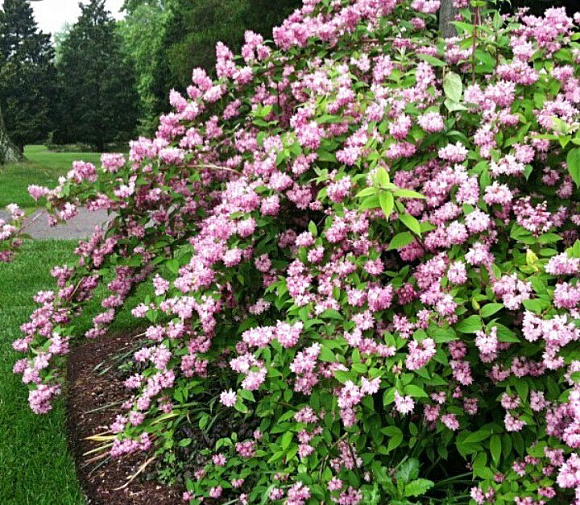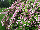 Вот, оказывается, кому подходит определение «розовая и пушистая»! Правда, позднее нежно-розовые бутоны раскрываются в почти белые махровые колокольчики. Азиаточка быстро растет, имеет крепкий иммунитет. К почве непривередлива. Не отказывается цвести даже в тени деревьев, но лучше чувствует себя под рассеянным светом. Хорошо переносит обрезку. На зиму можно укрыть, но с хорошим снежным покровом прекрасно зимует без дополнительной заботы. При подмерзании верхних частей побегов – быстро восстанавливается.
