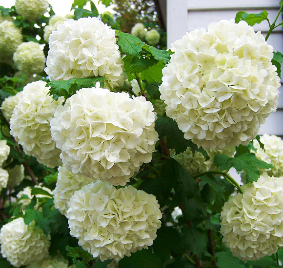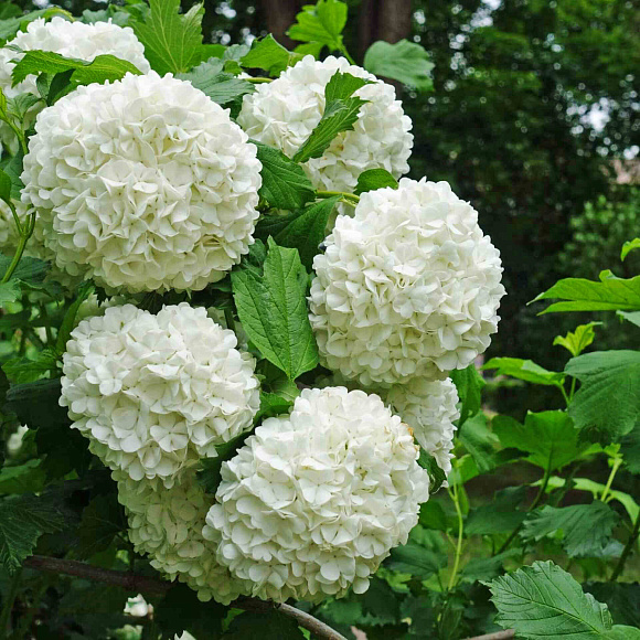 Применение. В одиночных и групповых посадках, живых изгородях, опушках, как окантовка для водоемов. Карликовые сорта в альпийских горках и патио. Хорошо сочетается дубом, липой, рябиной. Стерильная форма (Sterile) используется в букетах. Слабогоречные сорта выращиваются как плодовая культура.