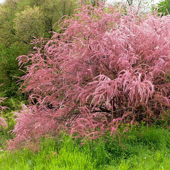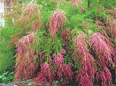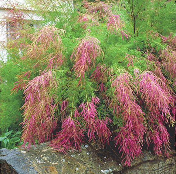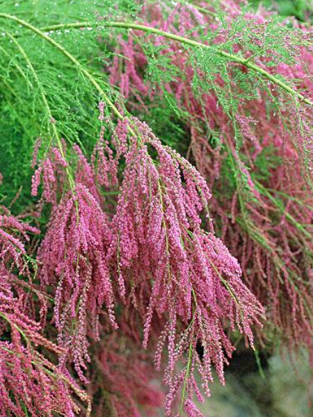 Напоминает хвойный кустик, нехарактерно розовеющий с середины побегов. Сходство придают тонкие игольчатые листочки, мягкие на ощупь. Розовые бутончики соцветий, словно бисер, щедро осыпают ажурные веточки уже в мае. Яркий медонос цветет все лето до самых заморозков. Стойко переносит и затяжные дожди, и засуху, и сильные ветра. При хорошем снежном покрове зимует без укрытия.