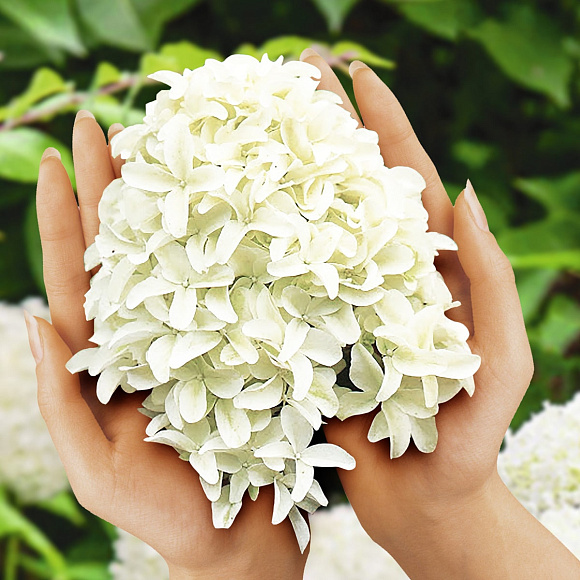 Необыкновенная гортензия Скайфол уникальная своими многочисленными гиацинтовидными соцветиями, достигающими в длину более 30 см! Цветки крупные, с сильно изогнутыми лепестками придают еще больший объем шапкам соцветий. Этот сорт практически не меняет цвет. Сразу после распускания он чисто-белый или слегка зеленоватый, позднее приобретают бледно-розовую палитру. Побеги вертикальные, сильные.