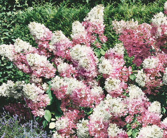 Использую гортензии очень широко. Они отлично смотрятся в любых цветниках как солитер, или в сложных композициях с декоративными кустарниками, и особенно, с хвойниками. Великолепно выглядят при входе в дом или на участок. Сажают гортензии так же в качестве свободнорастущей живой изгороди. Засушенные соцветия долго сохраняют декоративность и используются в зимних букетах.