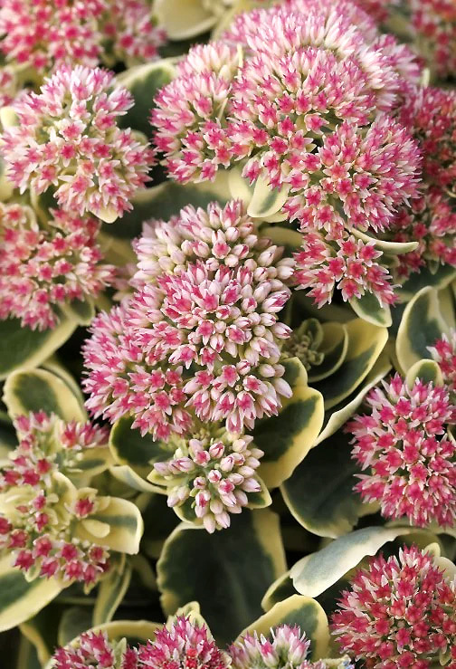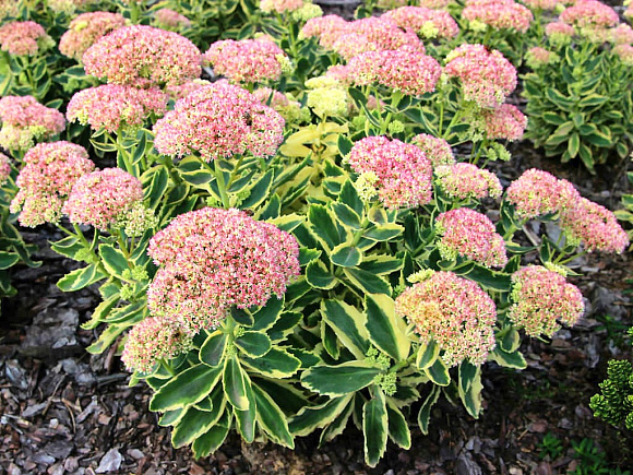 Очень нарядный компактный сор-хамелеон с плотной густой листвой. Листья зеленые со сливочно-желтой каймой. Кремовые звездчатые цветки в крупных соцветиях к осени становятся розовыми, а позднее приобретают насыщенные красные оттенки. Надземная часть на зиму целиком отмирает. Зимостойкость до −35 °С.