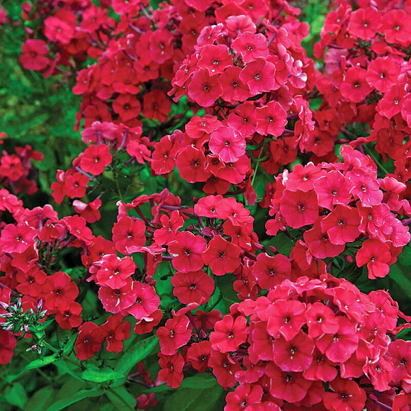 Один из самых популярных сортов флокса метельчатого. Роскошно-пышное, очень яркое и выразительное цветение. Плотно посаженные цветки, до 4 см в диаметре, образуют габаритные насыщенно-красные соцветия с малиновым тоном по центру. Аромат достаточно сильный, но нежный. Цветение среднепозднее. Листья зеленые с глянцевым отливом. Стебли крепкие, плотные. Зимует без укрытия. Устойчив к вредителям и болезням. Подходит для выращивания в напольных кашпо и контейнерах.