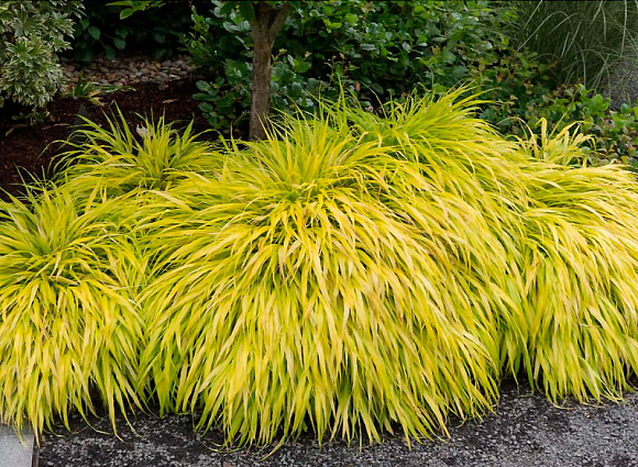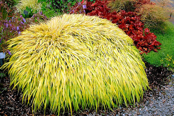 Изящный злак с длинными стройными золотистыми листьями. Разрастается в одном направлении и формирует пышные каскадные куртины. Наиболее зимостойкий из всех сортов. Перепады температуры весной и осенью могут придать легкое покраснение листьев. В середине лета появляются легкие метелки соцветий. Подходит для бордюров, красиво сочетается с хостами и гейхерами. Особого ухода не требует, не поражается болезнями. На зиму рекомендуем мульчирование. Зимостойкость до −35 °С.