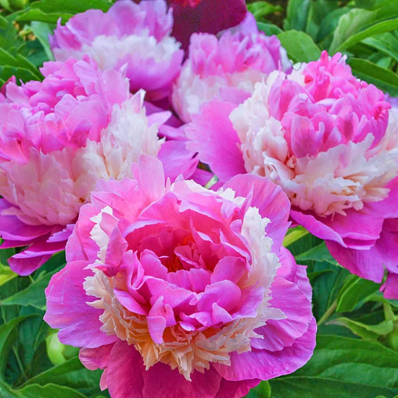 Считается одним из красивейших пионов. Бесподобный по форме и окраске, трехслойный пышный цветок с нежно-розовыми лепестками и махровой кремовой юбочкой посередине. Аромат приятный, ярко-выраженный. Срок цветения средний. Зимостойкость до -35°С.