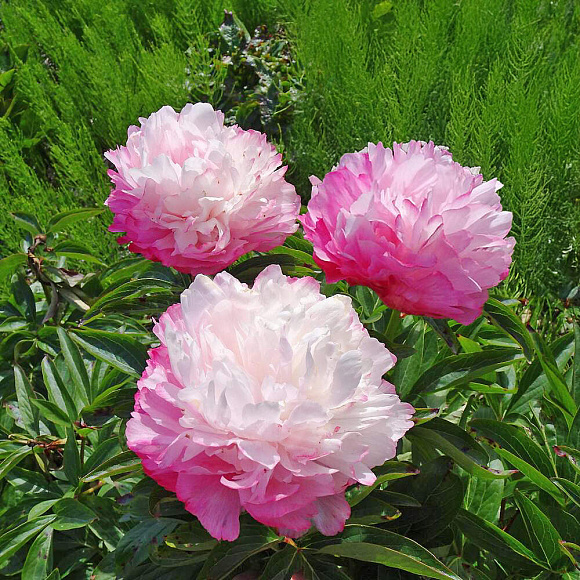 Единственный и неповторимый пион-хамелеон! Золотой медалист! Является миру в ярко-розовом цвете, а затем постепенно высветляется почти до белого, оставляя лишь нежную розоватую кайму по краям лепестков.