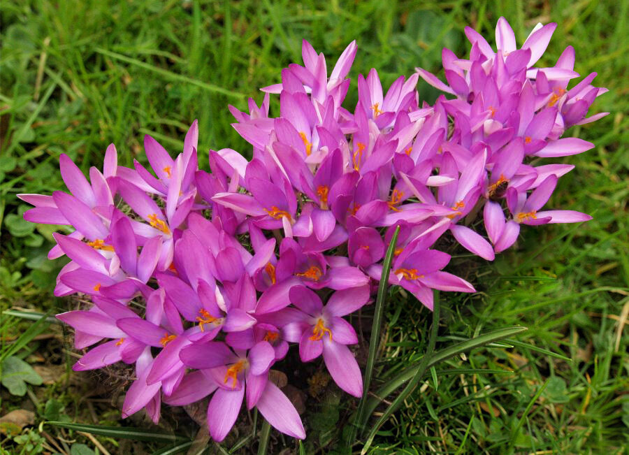 Посадка. Оптимальное время для посадки середина-конец августа. Плотные глинистые почвы перед посадкой разрыхляют песком. В кислые и торфяные добавляют фосфорно-калийные удобрения и известкуют. Структуру и состав бедных песчаных почв улучшают глиной и органическими удобрениями. Расстояние между растениями 6-12 см, глубина посадки зависит от величины луковицы, чем она крупнее, тем глубже, и составляет 4-8 см. Можно сажать крокуса прямо на газоне. Для этого делают надрез похожий на букву Н и открывают две створки. На почву посыпают перегной, золу, минеральные удобрения и аккуратно перемешивают. Затем нужное количество луковиц аккуратно вдавливают на глубину, створки закрывают и придавливают руками. В сухую погоду место посадки нужно полить.