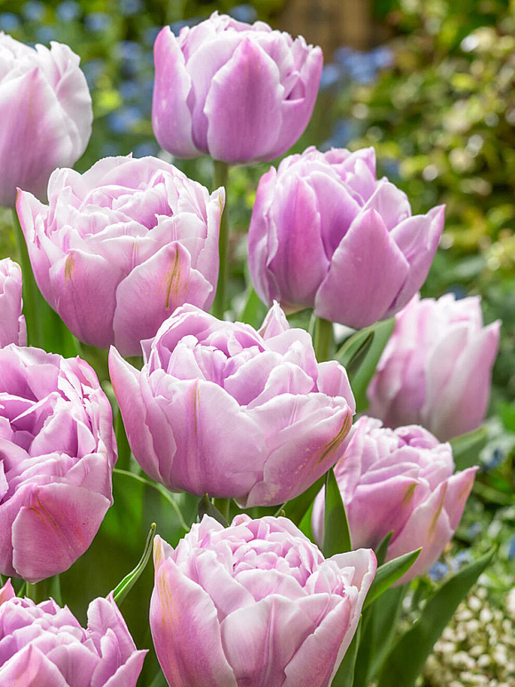 Пышные, многослойные соцветия диаметром до 12 см напоминают распустившийся пион. Их розово-сиреневый оттенок переливается и поблескивает на свету. Тюльпан долго сохраняет свежесть в срезке, не теряя формы. Распускается в конце весны, завершая сезон ярким и элегантным аккордом.