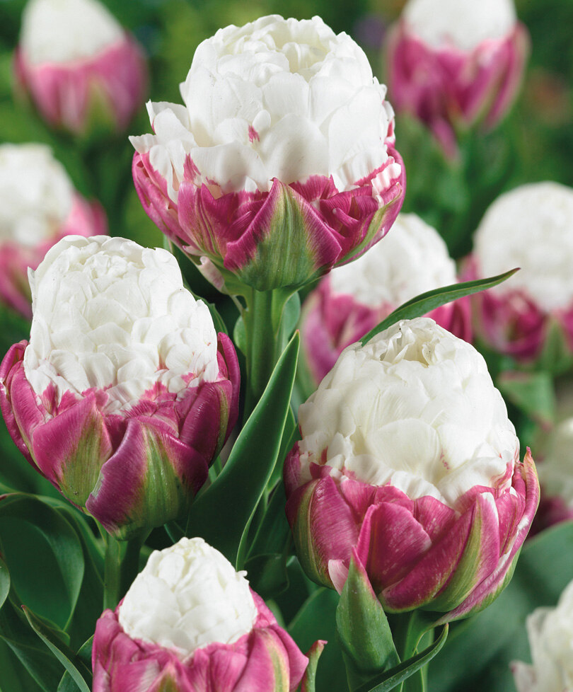 Для любителей послаще представляем тюльпан-мороженое! Такой красивый и манящий. По мере распускания сначала формируется несколько рядов клубнично-розовых лепестков, а затем сверху выстреливает пышное воздушное бело-кремовое соцветие. Вишневое мороженое и вбитые сливки сверху. Куст невысокий, аккуратный.
