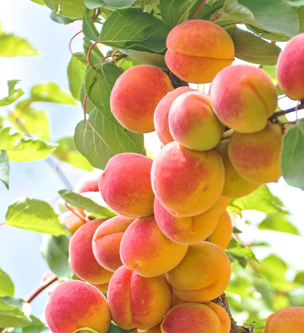 Румяный бархатистый красавец! Основной окрас плодов ярко-оранжевый. Абрикосы крупные (40–60 г), с желтой медовой мякотью, ароматные, с приятной кислинкой. Дерево компактное, высотой до 2,5 м, с диаметром кроны всего 30 см. Плодоношение растянутое, что позволяет продлить вкусовое наслаждение. Сигнальные плоды появятся уже на второй год после посадки. Сорт не требует дополнительных опылителей. Показывает отличный иммунитет и высокую зимостойкость до -35°C.