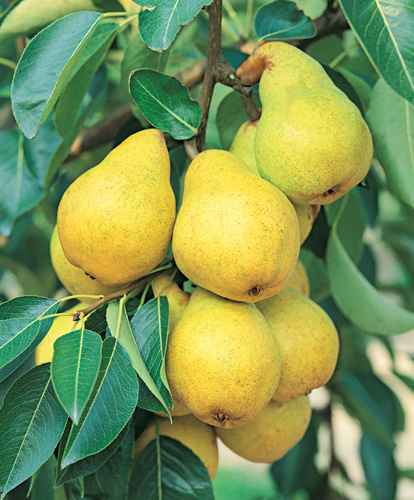 Груша – очень урожайная культура. С одного дерева обычно снимают в два-три раза больше плодов, чем с яблони. Нередко случается, что под тяжестью урожая скелетные ветви отламываются от ствола. С началом плодоношения под них надо ставить подпорки – чатала. Груша любит хорошее увлажнение, поливать ее следует не часто, но обильно. Особенность груши – пониженная зимостойкость в молодом возрасте, поэтому для защиты от морозов в первые годы полезно зарывать деревце в снежный ком. С началом плодоношения зимостойкость резко возрастает. Все предлагаемые нами сорта выдерживают морозы до -40–45 °C. Очень важно правильно определить время съема плодов груши. Летние и раннеосенние сорта следует снимать по мере созревания, с началом пожелтения окраски кожицы. Осенние и зимние убирают во второй-третьей декаде сентября, до наступления заморозков ночью ниже -3 °С. При температуре -3 °С груши замерзают и долго храниться не могут. Если вы планируете посадку крупных деревьев в ближайшее время, то, учитывая, что сейчас выведены добротные зимостойкие сорта груши и сливы, можно предложить такой породный состав: 5 яблонь, 5 груш и 4 сливы. Не стоит увлекаться одними яблонями, в год с хорошим урожаем их некуда девать. А разнообразные фрукты на столе еще никому не помешали.