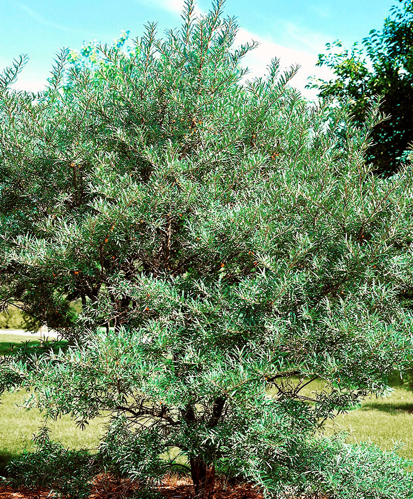 Облепиха — растение светолюбивое, в загущенных посадках она слабо ветвится и плохо плодоносит, поэтому кусты нужно сажать на расстоянии не менее 3 м друг от друга.