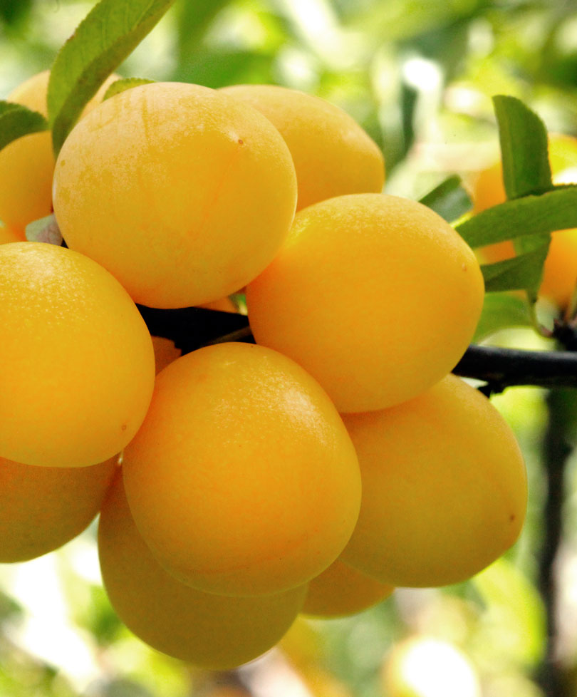 Это действительно подарок, подарок великому городу, подарок всем российским садоводам. Дерево высотой 3 м, с плакучей кроной. Плоды массой 20–25 г, удлиненно-яйцевидные, яркие, желто-оранжевые, с нежным ароматом. Характерный восковой налет придает им особую пикантность. Мякоть ярко-желтая, сочная, с гармоничным кисло-сладким вкусом. В плодоношение вступает рано, на третий год после посадки. Может давать до 60 кг плодов с одного дерева. Ежегодное обильное плодоношение. Быстро наращивает урожай. Плоды так плотно облепляют ветви, что иногда кажется, будто это вовсе и не сливы, а ягоды гигантской облепихи. Эта слива великолепна и в свежем виде, и в компотах, и в варенье. Зимостойкость высокая. Рекомендуемый опылитель – Стартовая.