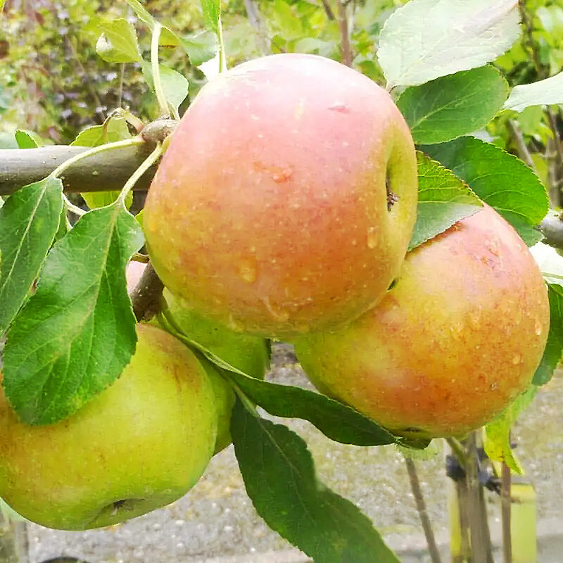 Высокозимостойкий сорт уральской селекции, частично самоплодный, с абсолютной устойчивостью к парше и неблагоприятной погоде. Плоды очень красивые, желтые, покрытые розовыми штрихами, массой 100–110 г. Мякоть белая, мелкозернистая, хрустящая, гармоничного вкуса без лишней кислоты. Надежный подвой позволяет дереву обильно плодоносить на протяжении 50 лет.