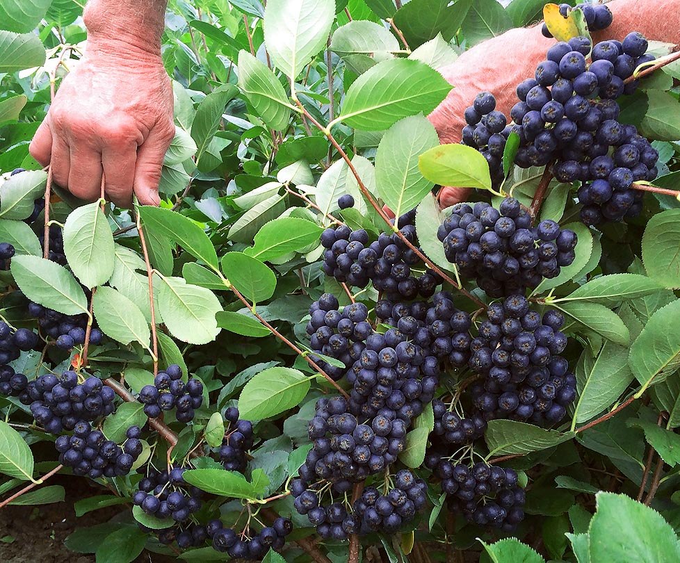 Любимая многими «черноплодка» (черноплодная рябина), чьи ягоды так хорошо подкрашивают любые напитки, варенья, вино, придавая им пряный и чуть терпкий привкус. Плоды крупные (до 1,5 г), шаровидные, слегка сплюснутые, черные с сизоватым налетом. Растение более 3 м, с плотной овальной кроной, славится своей неприхотливостью, ежегодной урожайностью, почти не болеет и не повреждается вредителями. Быстро растет и начинает давать урожай. Кусты обворожительно красивы во время цветения и осенью, нагруженные урожаем, а затем с листвой, полыхающей желтым, оранжевым и красным. Из растений легко устроить живую изгородь, как стриженую, так и свободнорастущую. Предпочитает хорошо освещенное место посадки и легкий суглинок. Зимостойкость до - 40 °С.