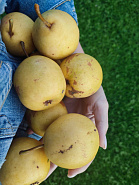 Выписали грушу в 2018 году, осенью. Первые года, за сезон очень мало давала прироста.Видимо по этой причине плодоносить стала позже указанных сроков.В 2024 году было нескольколько цветков, но не завязались.В этом году цвела обильно, но завязалось примерно 20 штук.Груши крупные, где на солнышке, бочки красные. Уже попробовали две.Сладкие и крахмальные. Для Сибири это отличный результат.