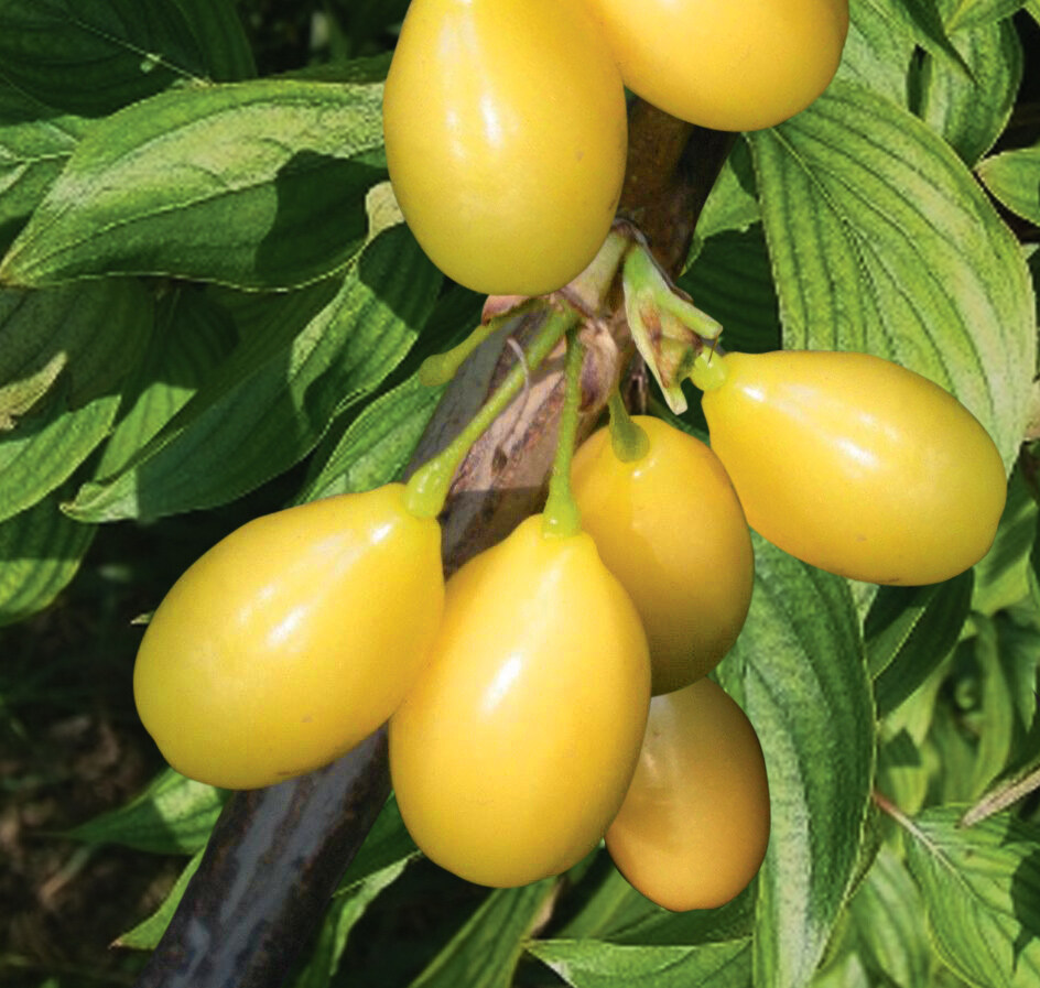 Ранний сорт российской селекции с необычным для кизила солнечно-желтым цветом ягод. По внешнему виду плоды овальные, крупные, массой 7-9 г, с блестящей тонкой кожицей. Вкус слегка терпкий, кисло-сладкий, с ярко выраженным ароматом. Изумительными получаются джемы, варенья и компоты. Прямостоячий кустарник вырастает до 2 м. Чудесным образом и длительно цветет в апреле, а урожай созревает к середине августа. Зимостойкость до -35 °C. Самобесплодный.