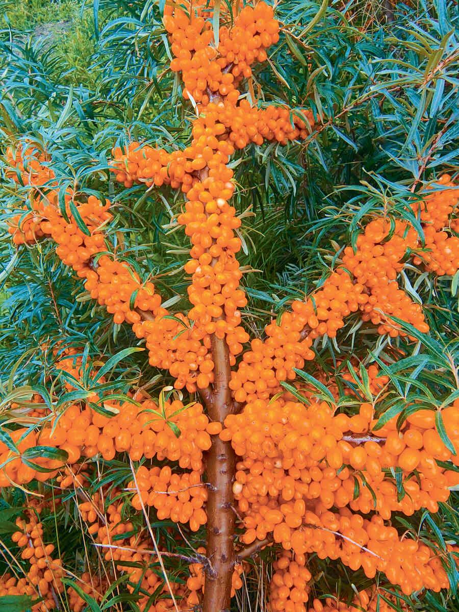 Облепиха — растение светолюбивое, в загущенных посадках она слабо ветвится и плохо плодоносит, поэтому кусты нужно сажать на расстоянии не менее 3 м друг от друга.